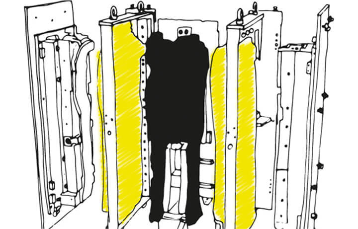 - 溶着される成形品の接合部は、電気ヒーターで十分に加熱され、接触(熱伝導)または輻射熱で加熱され、加圧状態で溶着される。