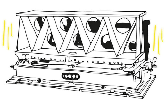 振動する直線的な相対運動により、熱可塑性樹脂部品の接触面を加熱、可塑化、溶着させる。